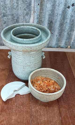 Perfect for making sauerkraut, kimchi, and other probiotic-rich foods, these stoneware crocks are both functional and beautiful. Each pot holds approximately 3 litres—ideal for fermenting a large cabbage or a mix of seasonal vegetables.