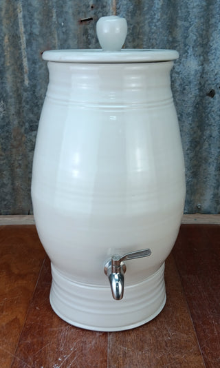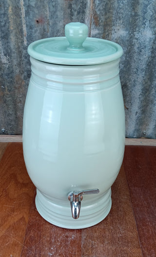 Each gravity-fed filter is hand-thrown from clay and finished in your choice of four stunning, natural glazes. Designed to remove impurities and naturally cool your water, these ceramic filters offer a clean, chemical-free alternative to plastic or mass-produced systems.