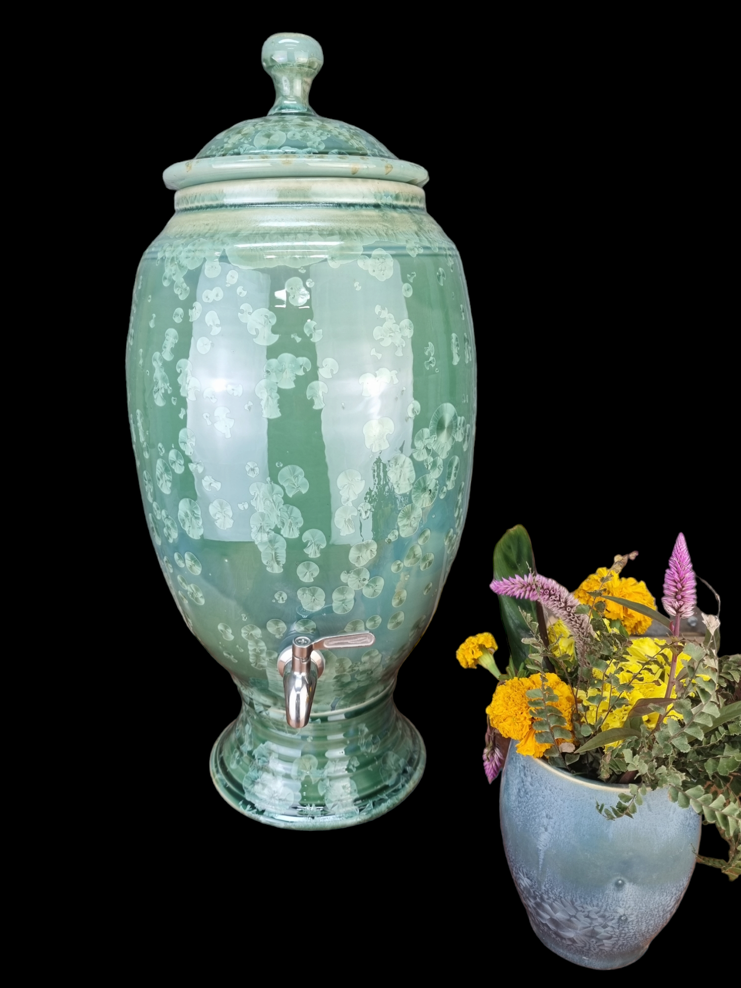 The crystals are part of the special effects range of glazes these are very high end in both their beauty and their difficulty in repetition.